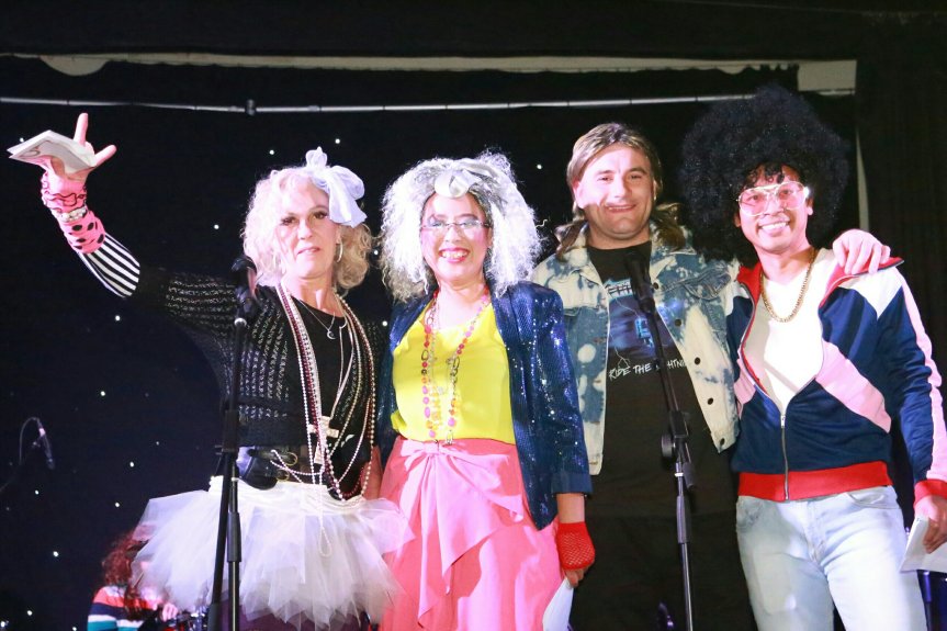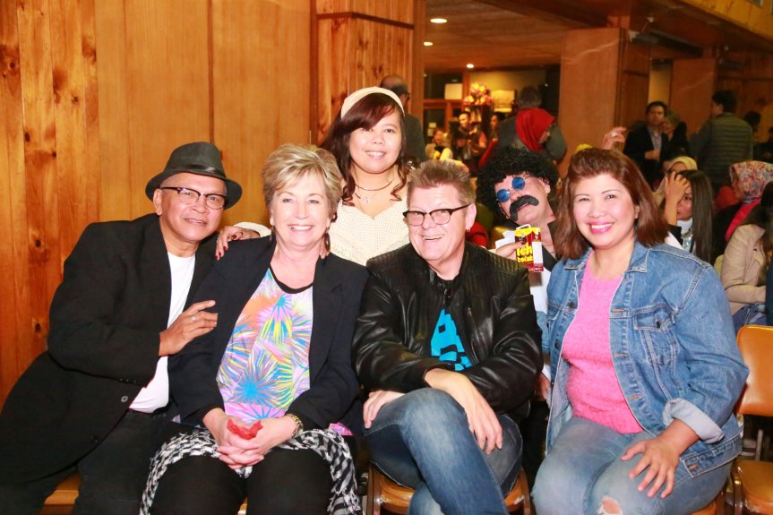 Duet MC; Ina Kusumaningrum & Daniel Micklem (tengah), bersama kontestan ‘Kostum Terbaik’; Sandy Feutril dan Toto Sudibyo.