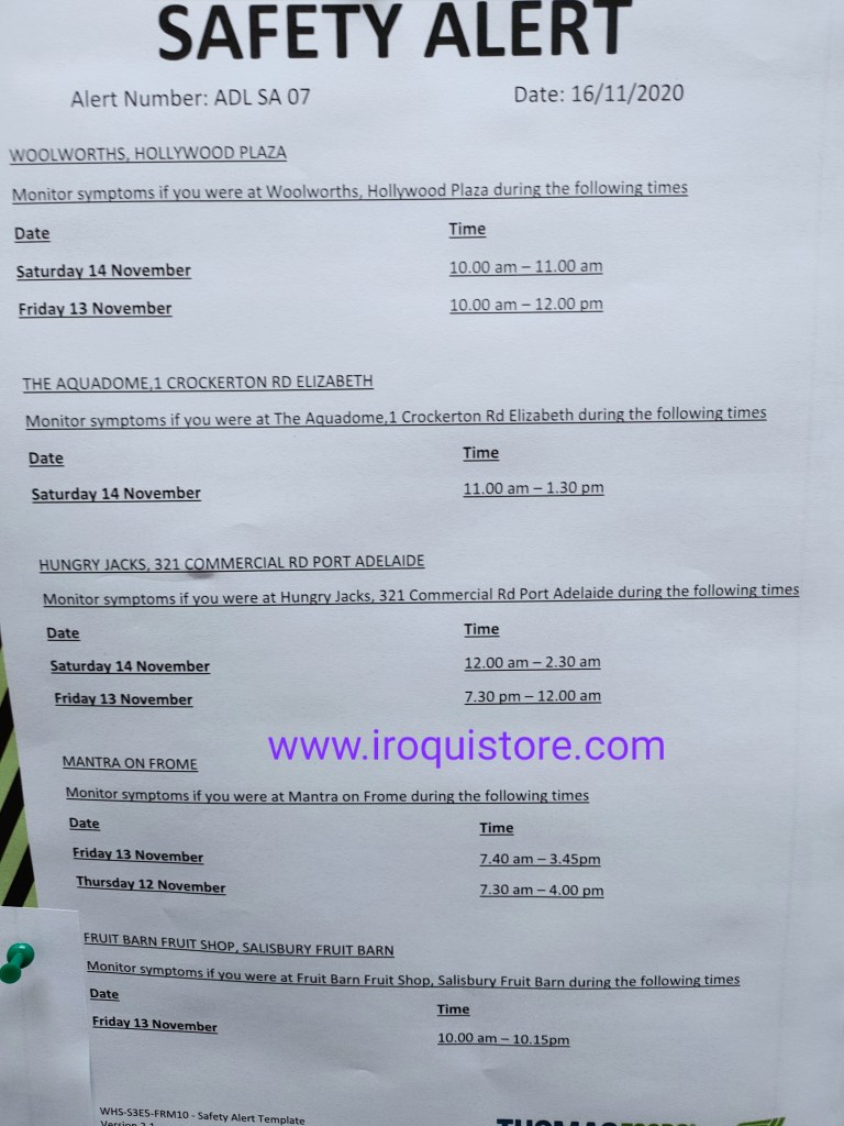 Bagi anda yang mengunjungi lokasi di Adelaide, SA, pada waktu tertentu yang tertera pada gambar dibawah ini, diharapkan sedini mungkin untuk melakukan rapid test dan melakukan lapor diri kepada pihak terkait.